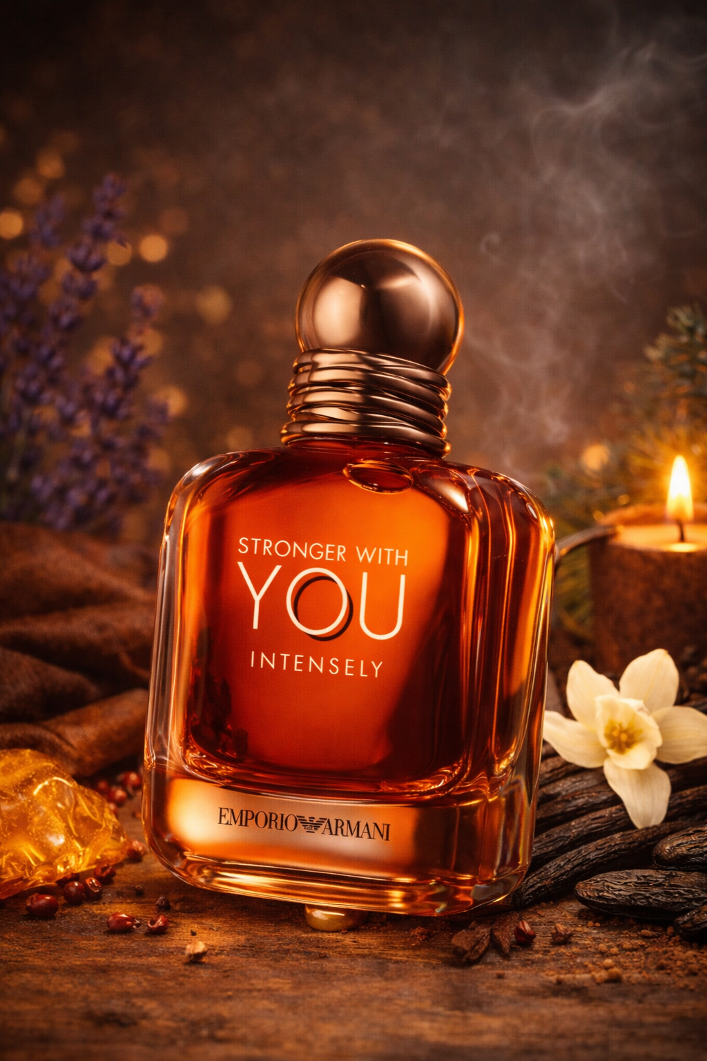 Stronger With You Intensely es una fragancia masculina oriental-amaderada y fougère intensa, diseñada para el hombre moderno seguro de sí mismo, apasionado y con una presencia inolvidable. Su aroma representa fuerza, conexión emocional y seducción, con un perfil olfativo cálido y profundo que deja una estela magnética.